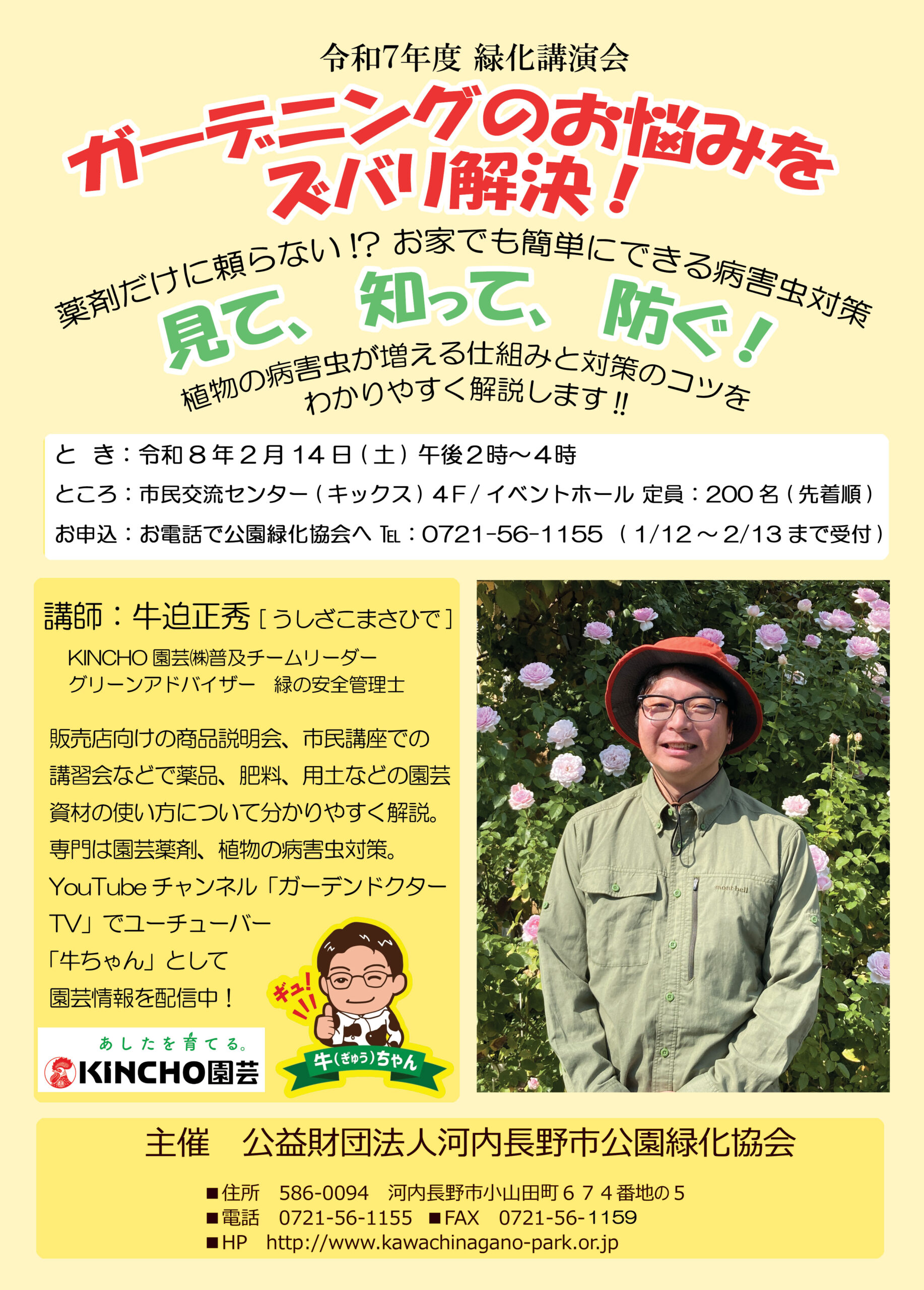 HOME 〉 お知らせ 〉 イベント 〉 緑化講演会のお知らせ お知らせNEWS 当協会の取り組みやイベント活動、法人情報などにの情報を発信しています。定期的に更新していますので、ぜひご覧ください。 当協会の取り組みやイベント活動、法人情報などにの情報を発信しています。定期的に更新していますので、ぜひご覧ください。 全ての記事 公園 イベント 法人 緑化 その他 緑化講演会のお知らせ 2026年1月21日 日時:2月14日(土) 午後2時~4時 参加費無料 場所:市民交流センター(キックス) 4Fイベントホール お申込み:お電話にて公園緑化協会へ 0721-56-1155 お知らせ一覧